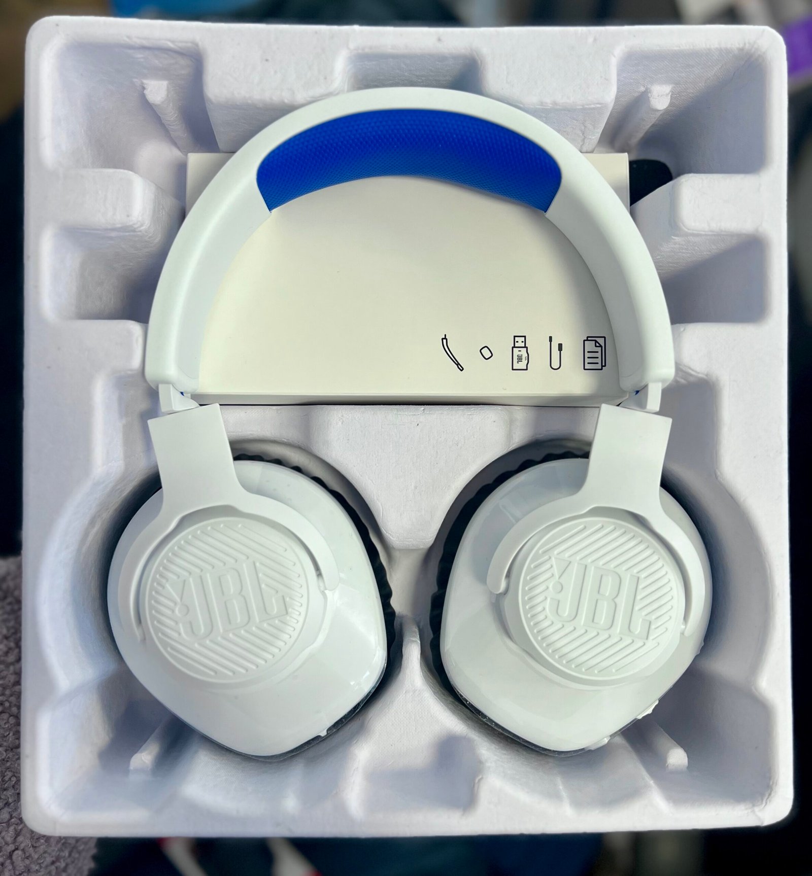Naudotos | Belaidės žaidimų ausinės JBL Quantum 360, balta